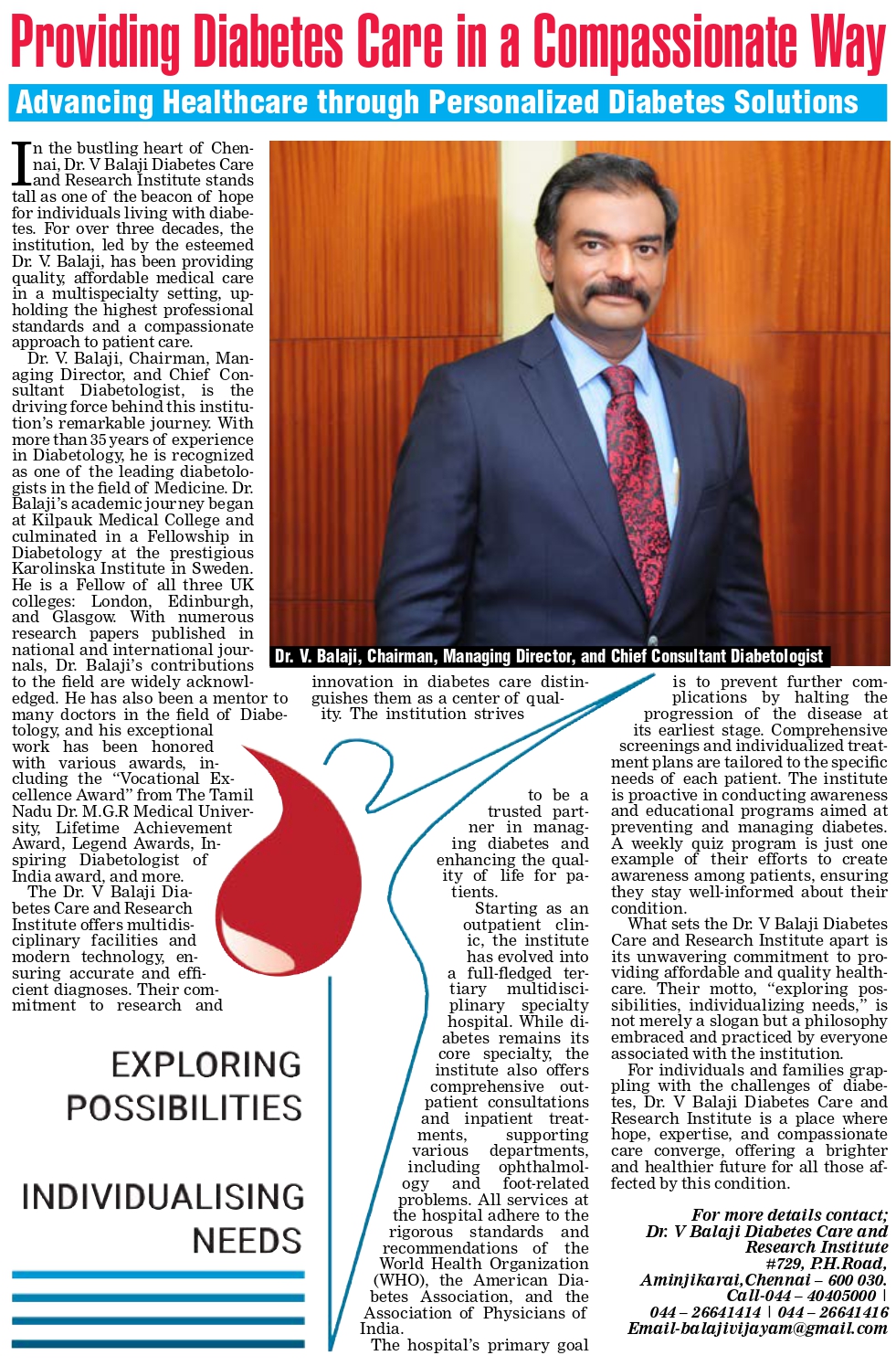 Welcome to Dr. V. Balaji Diabetes Care and Research Institute